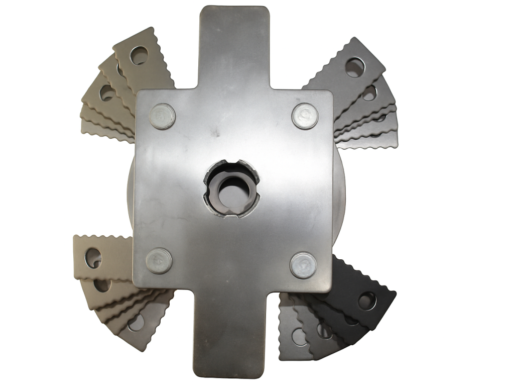Náhradní celokovový mechanizmus pro šrotovníky – 2 ostré nože a 20 kladívek pro efektivní drcení obilí, kukuřice a dalších plodin. Vhodný pro modely s hřídelí 19 mm.