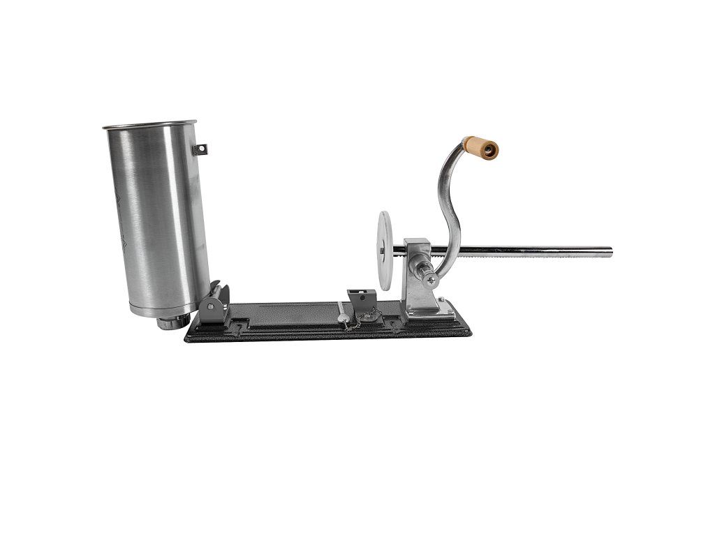 Popis: Tento svislý plnič je navržen tak, aby minimalizoval vznik vzduchových kapes při plnění jitrnic a klobás. Tubus o průměru 12 cm a délce 32 cm pojme až 3 kg mleté směsi. Díky kompaktním rozměrům se snadno vejde i na menší pracovní plochy.