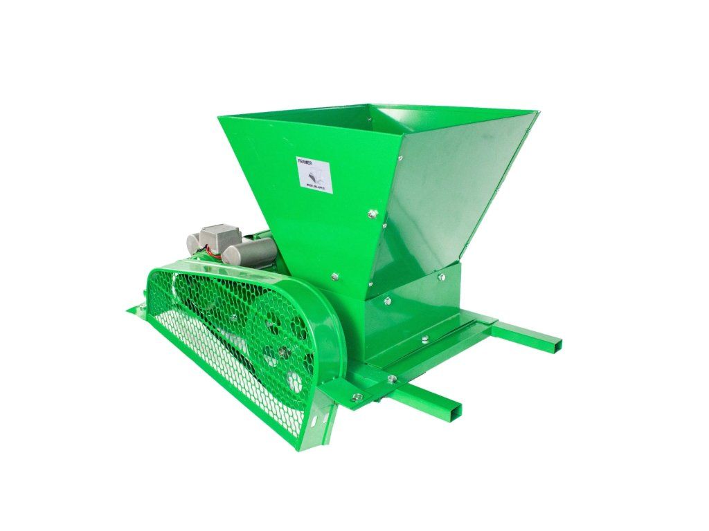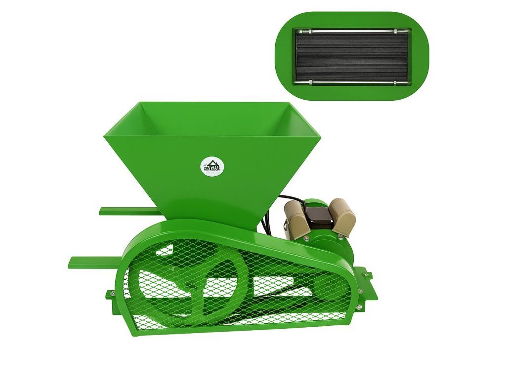 Popis produktu: Elektrický drtič hroznů je ideálním řešením pro rychlé a efektivní zpracování hroznů při výrobě moštu a vína. Kombinuje silný 0,5kW motor, který pohání drticí válce z tvrdého potravinářského termoplastu, a plechovou nádobu s antikorozní povrchovou úpravou. Tato konstrukce zaručuje dlouhou životnost a zachování přirozené chuti hroznů bez nežádoucích příměsí kovu.