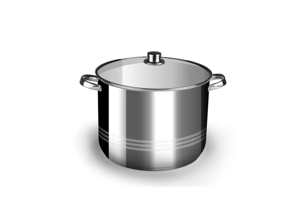 Nerezový hrnec o objemu 13 l se skleněnou poklicí a odolným povrchem. Vyroben z kvalitní nerezové oceli, vhodný pro všechny typy sporáků včetně indukce. Nepřilnavý povrch umožňuje zdravé vaření s minimem tuku a snadné čištění.