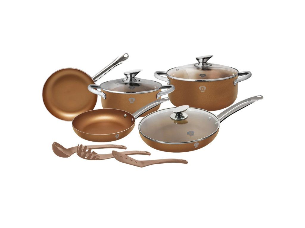 11-dielna sada hrncov a panvíc Blaumann z kvalitnej hliníkovej ocele s pokrievkami z tvrdeného skla. Vhodná pre všetky typy sporákov vrátane indukcie a do rúry do +220 °C. Elegantný dizajn, nitované rukoväte a jednoduché čistenie.