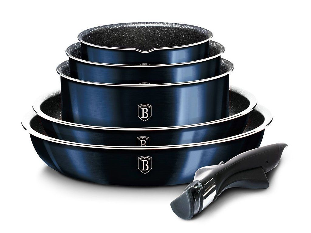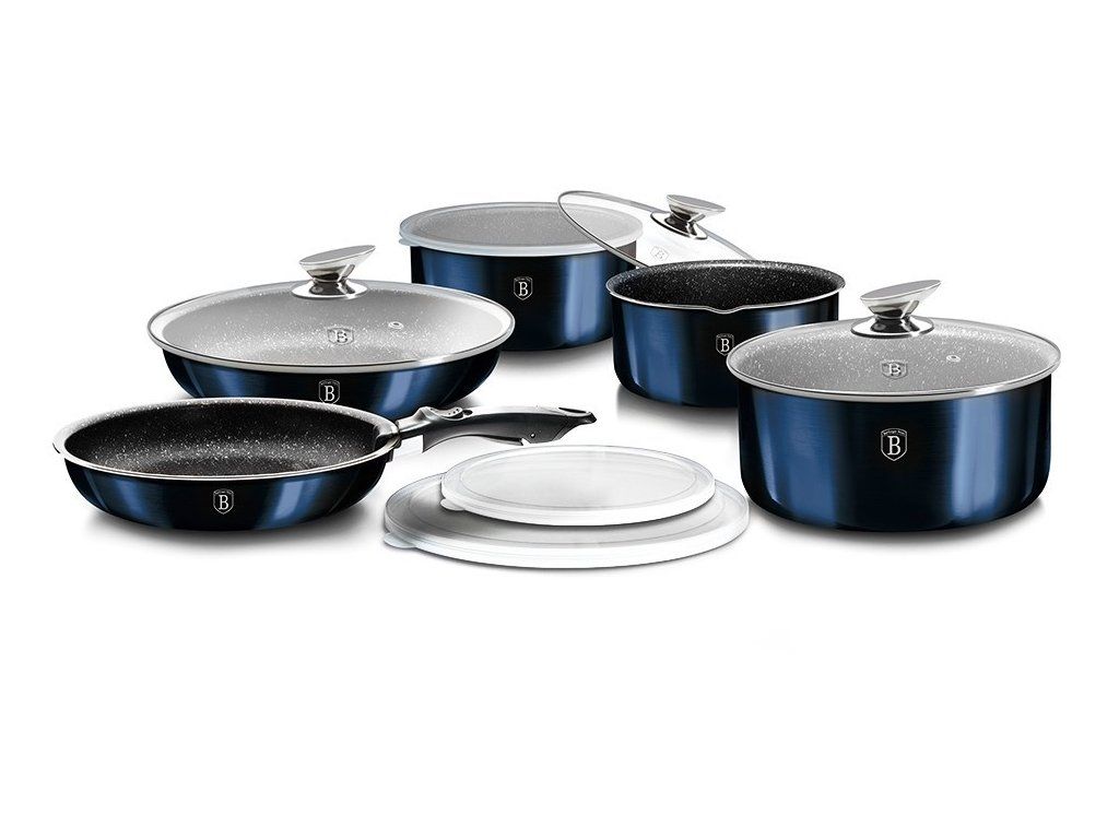Sada hrnců s mramorovým povrchem 12 dílná BerlingerHaus - metalická modrá