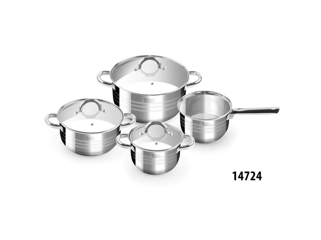 7-dílná sada hrnců je vyrobena z kvalitní nerezové oceli s odolným vnějším povrchem a 5-vrstvým dnem. Sada je vhodná pro všechny typy sporáků, včetně indukce.