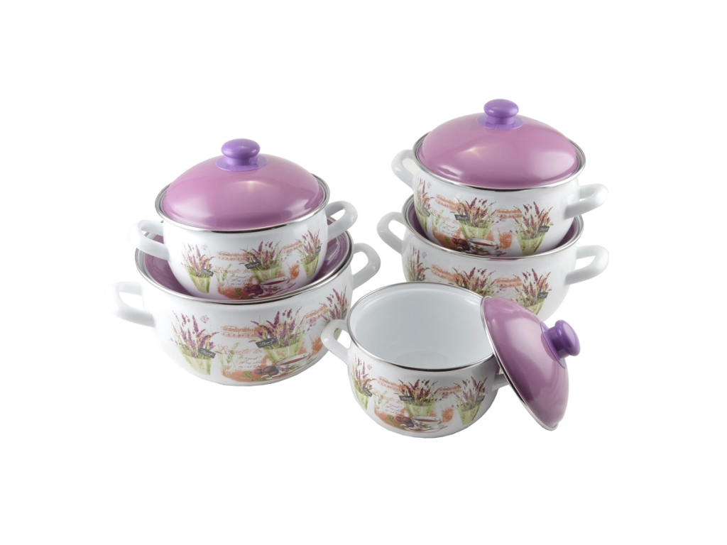 Sada smaltovaných hrnců 10 dílná levandule Perfect Home