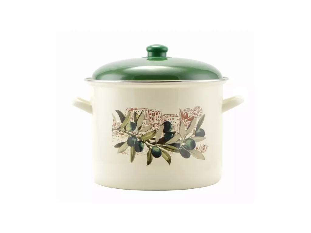 Smaltovaný hrnec s poklicí 2l, 16cm Perfect Home - olivový vzor