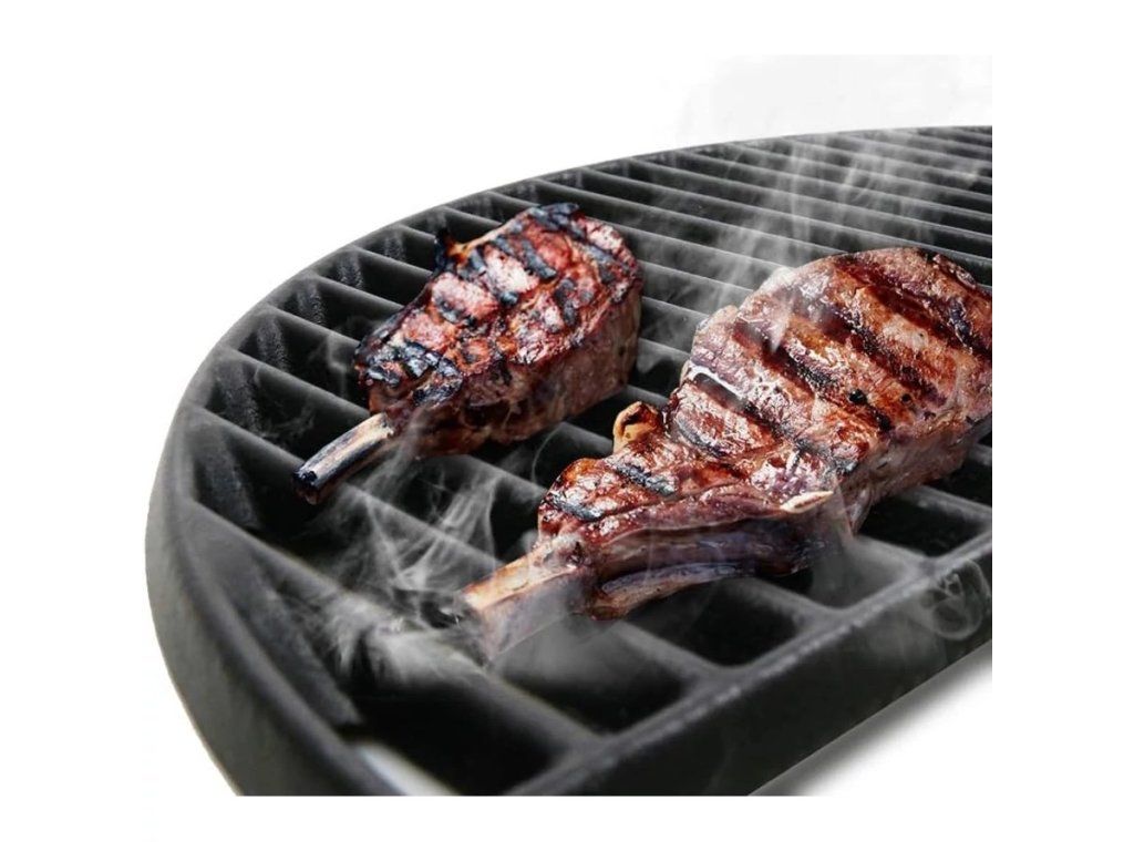 Sada půlkruhového roštu a plotny z litiny pro gril Kamado Nova/XL je praktickým doplňkem pro milovníky grilování. Kombinuje masivní litinový rošt a hladkou grilovací plotnu, které umožňují připravovat různé druhy pokrmů zároveň – maso, zeleninu i mořské plody.