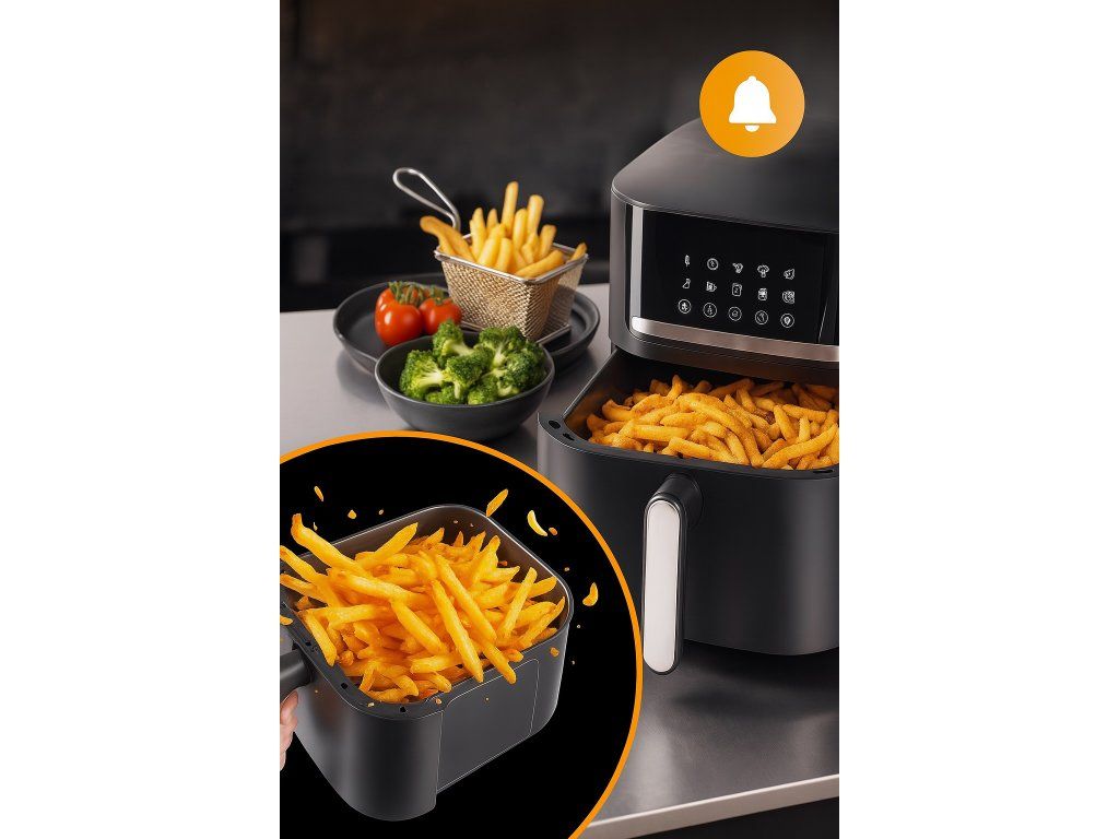 GOURMETmaxx 4 v 1 horkovzdušná fritéza 6 l – trouba, grill, fritéza a sušička v jednom Výkon 1600 W, teplotní rozsah 80–200 °C, automatické vypnutí při přehřátí 360° cirkulace horkého vzduchu pro křupavé a šťavnaté pokrmy s minimem tuku