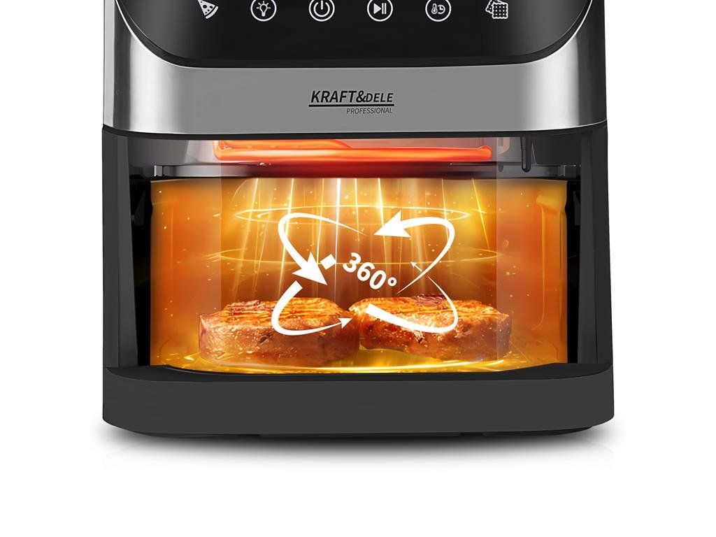 Popis produktu: Díky výkonu 2000 W a moderní cirkulaci horkého vzduchu se jídlo připravuje rychle, rovnoměrně a bez přepáleného tuku. LED displej umožňuje jednoduché ovládání a výběr z 10 automatických programů pro různé druhy pokrmů.