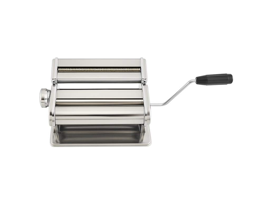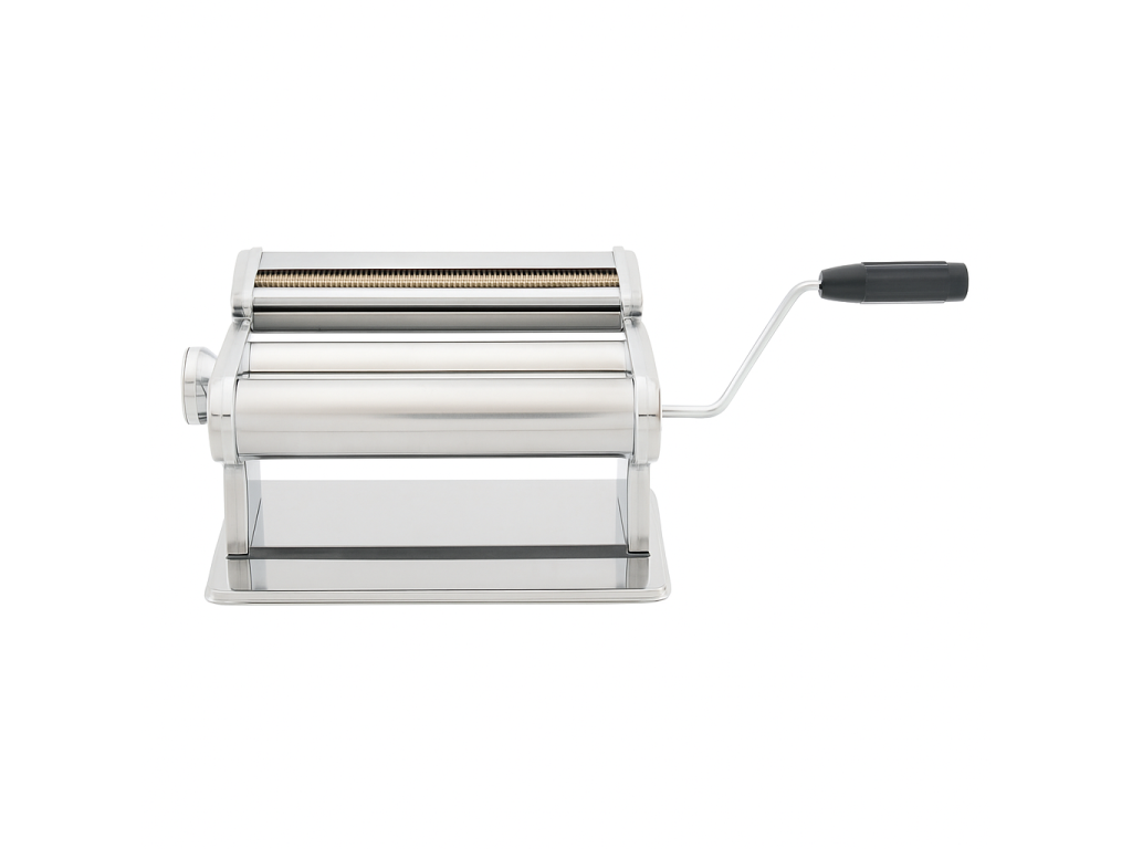 Stroj na těstoviny 260 mm z nerezové oceli s řezacím nástavcem. Uchycení ke stolu, šířka válcování 25,2 cm, v balení klika i svorka. Vhodné pro domácí nudle, cérnametélt i lasagne. Snadno se rozebírá a čistí.