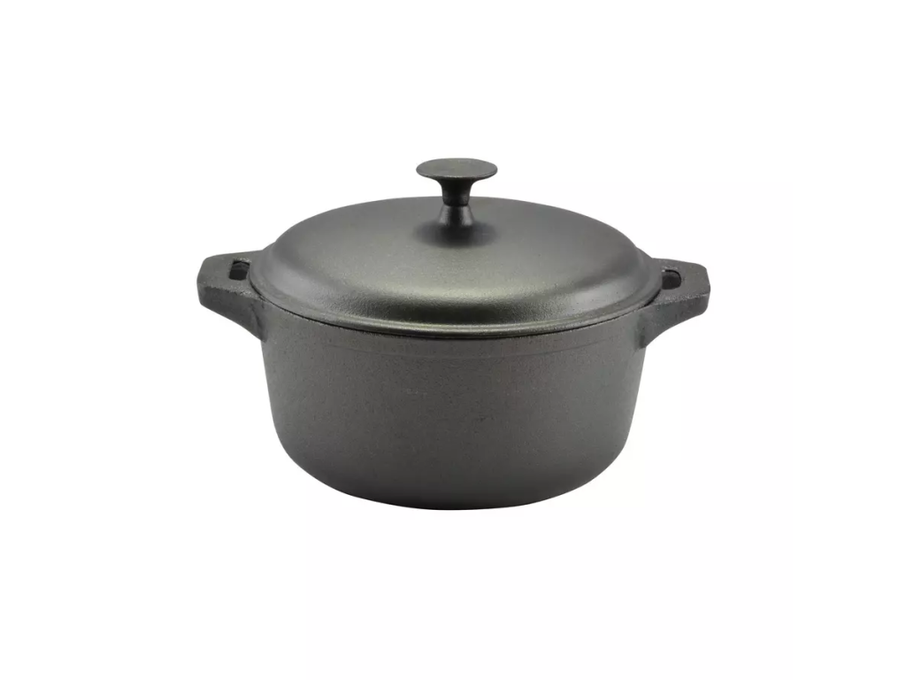 Litinový hrnec s poklicí z čisté litiny rovnoměrně rozvádí teplo a je mimořádně odolný vůči vysokým teplotám. Díky přírodnímu nepřilnavému povrchu bez chemických úprav je ideální pro zdravé vaření i pečení, přirozeně obohacuje pokrmy o železo.