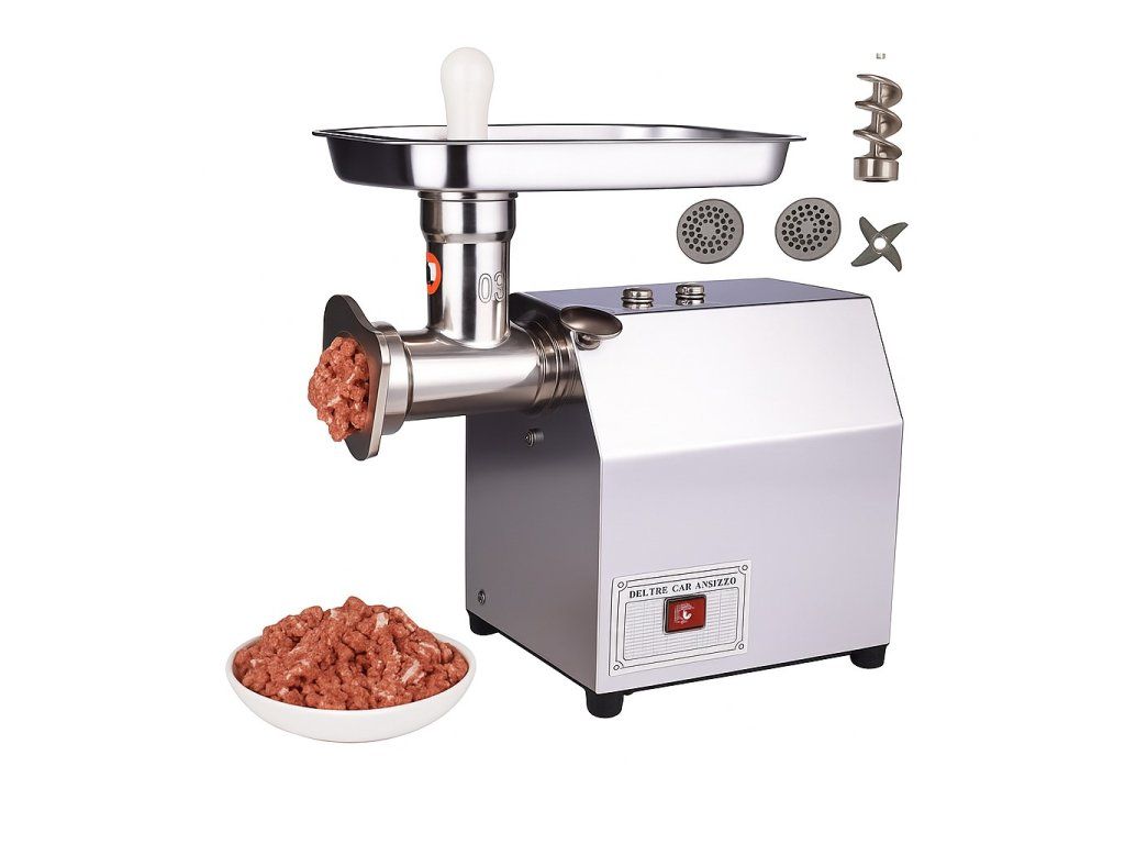 Profesionální elektrický mlýnek na maso INOX s výkonem 3000W a kapacitou 250 kg/h. Ideální pro restaurace, řezníky i domácí výrobu. Robustní nerezová konstrukce, úsporný motor nové generace a snadné čištění.