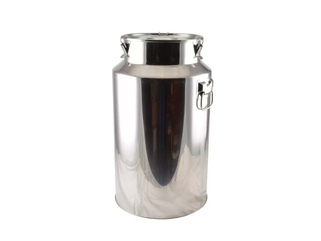 Nerezová nádoba pro přepravu mléka, polévky a jiných pokrmů o objemu 58 litrů.
