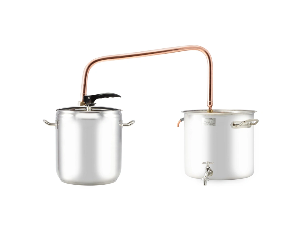 Domácí zařízení 17l HOBBY z nerezové oceli a mědi je kompaktní sada určená pro domácí zpracování ovocných směsí, kvasů, bylinných výluhů, aromatických roztoků a dalších tekutin, které vyžadují kontrolovaný ohřev a oddělování par. Díky sendvičovému dnu, nízké hmotnosti a univerzálnímu použití je ideální pro běžné domácí provozní podmínky.