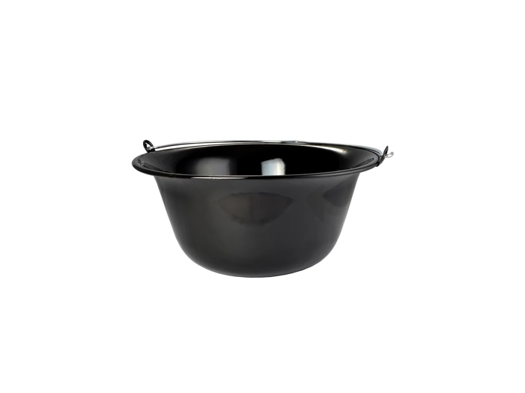 Smaltovaný kotlík 11L Tradiční smaltovaný kotlík o objemu 11 l je ideální pro vaření gulášů, polévek a jiných pokrmů na otevřeném ohni. Vyroben z pevného smaltovaného železa, které rovnoměrně rozvádí teplo a zajišťuje dokonalou chuť pokrmů. Černý smaltovaný povrch je elegantní, odolný a snadno se čistí.